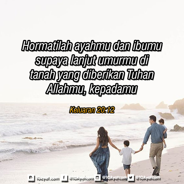 Hormatilah ayahmu dan ibumu, supaya lanjut umurmu di tanah yang diberikan Tuhan, Allahmu, kepadamu.