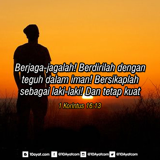 Berjaga-jagalah! Berdirilah dengan teguh dalam iman! Bersikaplah sebagai laki-laki! Dan tetap kuat.