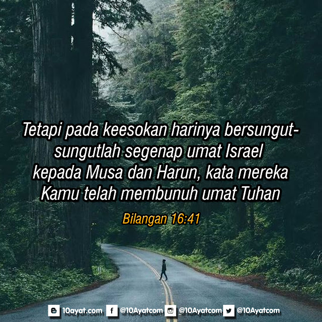 Tetapi pada keesokan harinya bersungut-sungutlah segenap umat Israel kepada Musa dan Harun, kata mereka: ”Kamu telah membunuh umat Tuhan.”