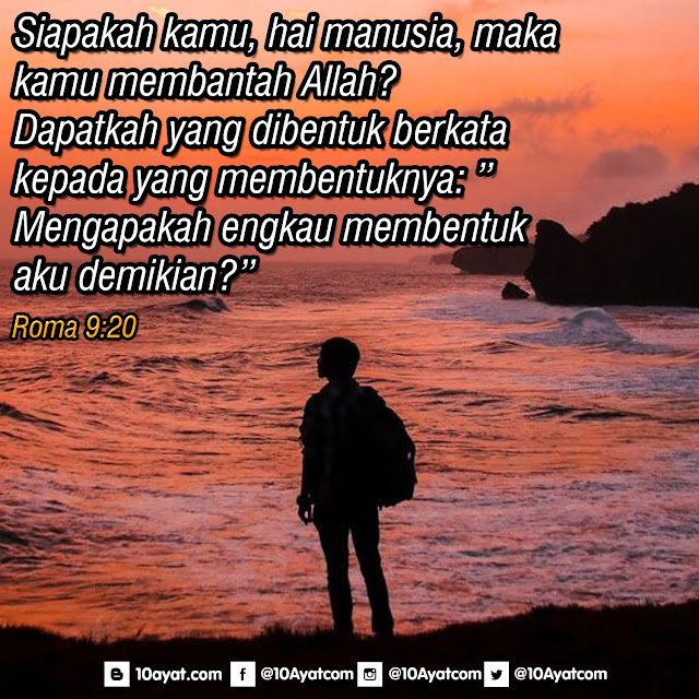 Siapakah kamu, hai manusia, maka kamu membantah Allah? Dapatkah yang dibentuk berkata kepada yang membentuknya: ”Mengapakah engkau membentuk aku demikian?”