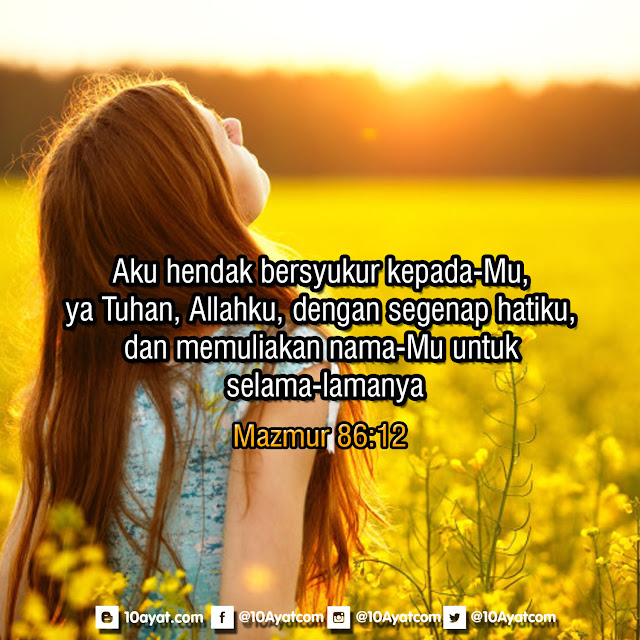 Aku hendak bersyukur kepada-Mu, ya Tuhan, Allahku, dengan segenap hatiku, dan memuliakan nama-Mu untuk selama-lamanya