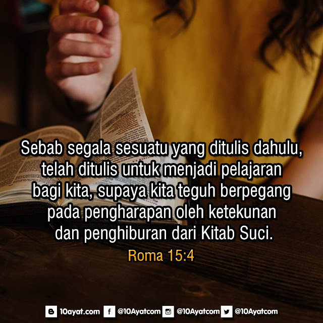 Sebab segala sesuatu yang ditulis dahulu, telah ditulis untuk menjadi pelajaran bagi kita, supaya kita teguh berpegang pada pengharapan oleh ketekunan dan penghiburan dari Kitab Suci.