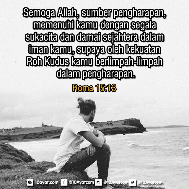 Semoga Allah, sumber pengharapan, memenuhi kamu dengan segala sukacita dan damai sejahtera dalam iman kamu, supaya oleh kekuatan Roh Kudus kamu berlimpah-limpah dalam pengharapan.