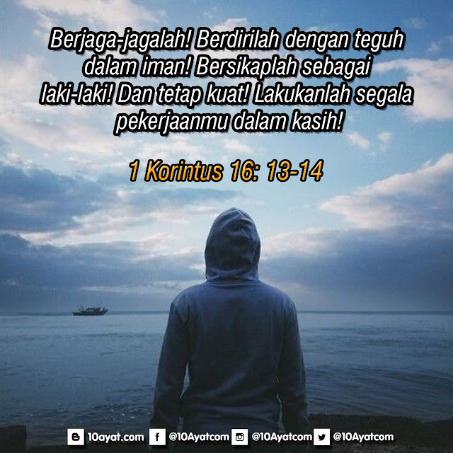 Berjaga-jagalah! Berdirilah dengan teguh dalam iman! Bersikaplah sebagai laki-laki! Dan tetap kuat! Lakukanlah segala pekerjaanmu dalam kasih!