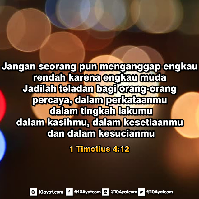 Jangan seorang pun menganggap engkau rendah karena engkau muda. Jadilah teladan bagi orang-orang percaya, dalam perkataanmu, dalam tingkah lakumu, dalam kasihmu, dalam kesetiaanmu dan dalam kesucianmu.