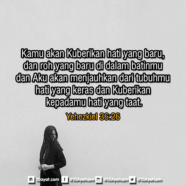 Kamu akan Kuberikan hati yang baru, dan roh yang baru di dalam batinmu dan Aku akan menjauhkan dari tubuhmu hati yang keras dan Kuberikan kepadamu hati yang taat.