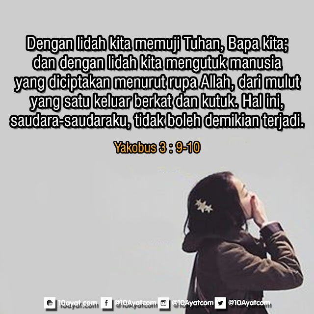 Dengan lidah kita memuji Tuhan, Bapa kita; dan dengan lidah kita mengutuk manusia yang diciptakan menurut rupa Allah, dari mulut yang satu keluar berkat dan kutuk. Hal ini, saudara-saudaraku, tidak boleh demikian terjadi.