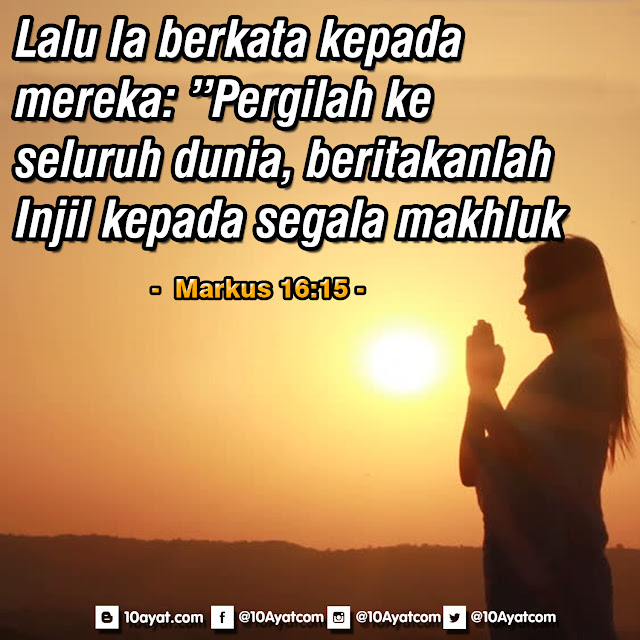 Lalu Ia berkata kepada mereka: ”Pergilah ke seluruh dunia, beritakanlah Injil kepada segala makhluk.