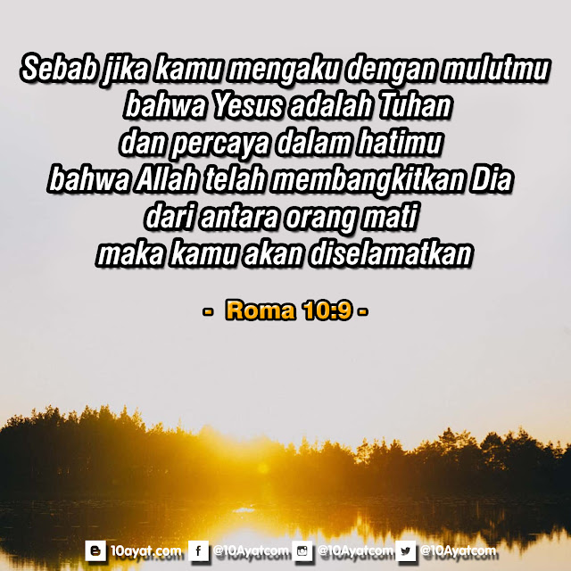 Sebab jika kamu mengaku dengan mulutmu, bahwa Yesus adalah Tuhan, dan percaya dalam hatimu, bahwa Allah telah membangkitkan Dia dari antara orang mati, maka kamu akan diselamatkan.