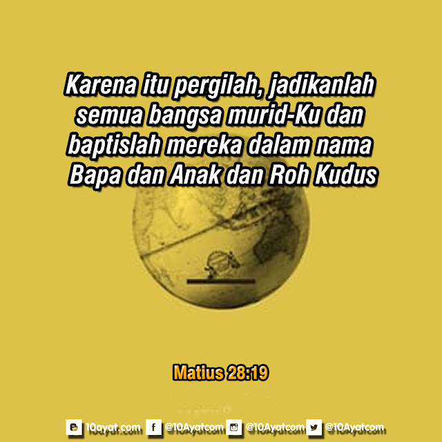 Karena itu pergilah, jadikanlah semua bangsa murid-Ku dan baptislah mereka dalam nama Bapa dan Anak dan Roh Kudus,