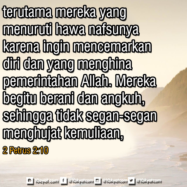 terutama mereka yang menuruti hawa nafsunya karena ingin mencemarkan diri dan yang menghina pemerintahan Allah. Mereka begitu berani dan angkuh, sehingga tidak segan-segan menghujat kemuliaan,