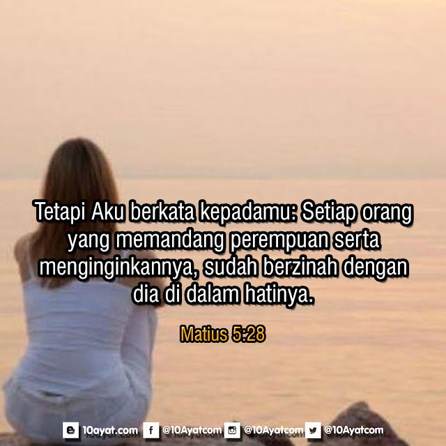 Tetapi Aku berkata kepadamu: Setiap orang yang memandang perempuan serta menginginkannya, sudah berzinah dengan dia di dalam hatinya.