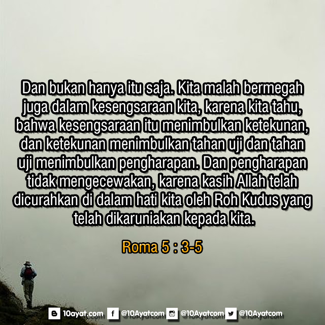 Dan bukan hanya itu saja. Kita malah bermegah juga dalam kesengsaraan kita, karena kita tahu, bahwa kesengsaraan itu menimbulkan ketekunan,