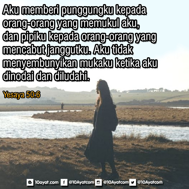 Aku memberi punggungku kepada orang-orang yang memukul aku, dan pipiku kepada orang-orang yang mencabut janggutku. Aku tidak menyembunyikan mukaku ketika aku dinodai dan diludahi.