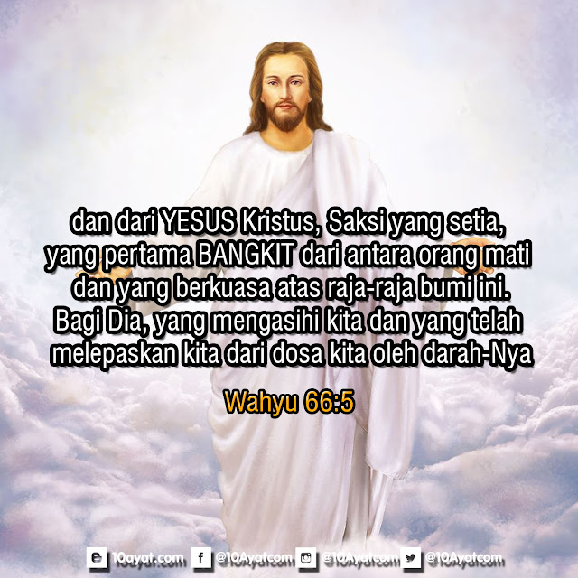 dan dari YESUS Kristus, Saksi yang setia, yang pertama BANGKIT dari antara orang mati dan yang berkuasa atas raja-raja bumi ini.Bagi Dia, yang mengasihi kita dan yang telah melepaskan kita dari dosa kita oleh darah-Nya