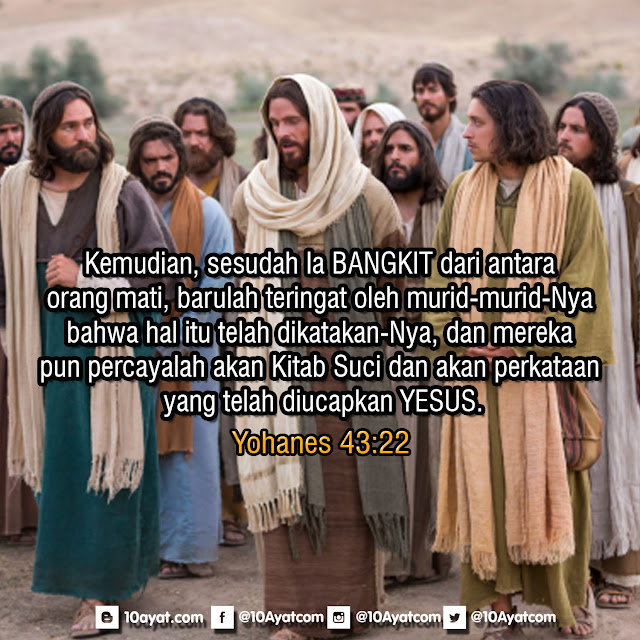 Kemudian, sesudah Ia BANGKIT dari antara orang mati, barulah teringat oleh murid-murid-Nya bahwa hal itu telah dikatakan-Nya, dan mereka pun percayalah akan Kitab Suci dan akan perkataan yang telah diucapkan YESUS.