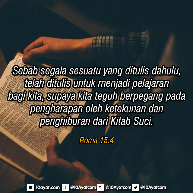 Sebab segala sesuatu yang ditulis dahulu, telah ditulis untuk menjadi pelajaran bagi kita, supaya kita teguh berpegang pada pengharapan oleh ketekunan dan penghiburan dari Kitab Suci.