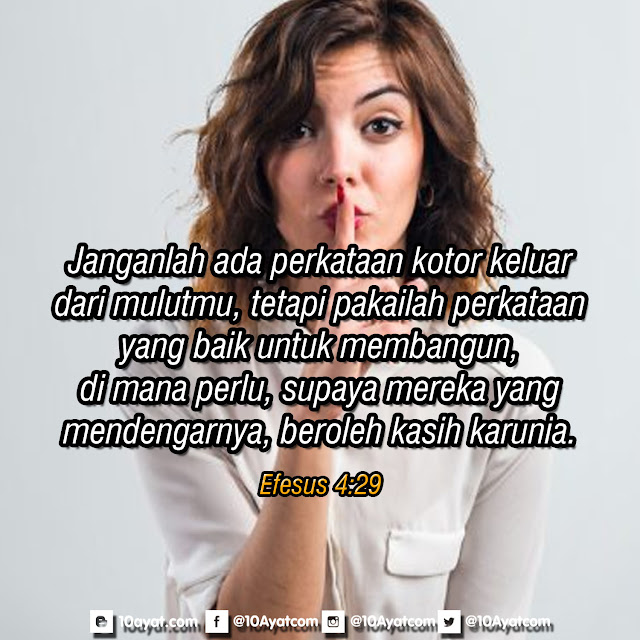 Janganlah ada perkataan kotor keluar dari mulutmu, tetapi pakailah perkataan yang baik untuk membangun, di mana perlu, supaya mereka yang mendengarnya, beroleh kasih karunia.