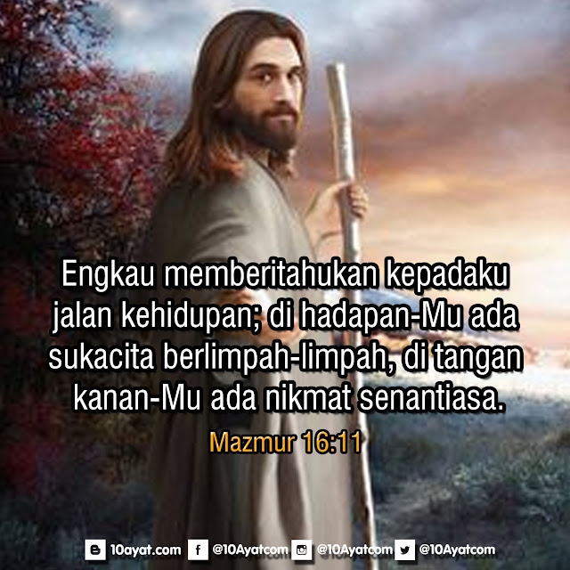 Engkau memberitahukan kepadaku jalan kehidupan; di hadapan-Mu ada sukacita berlimpah-limpah, dan tangan kanan-Mu ada nikmat senantiasa.