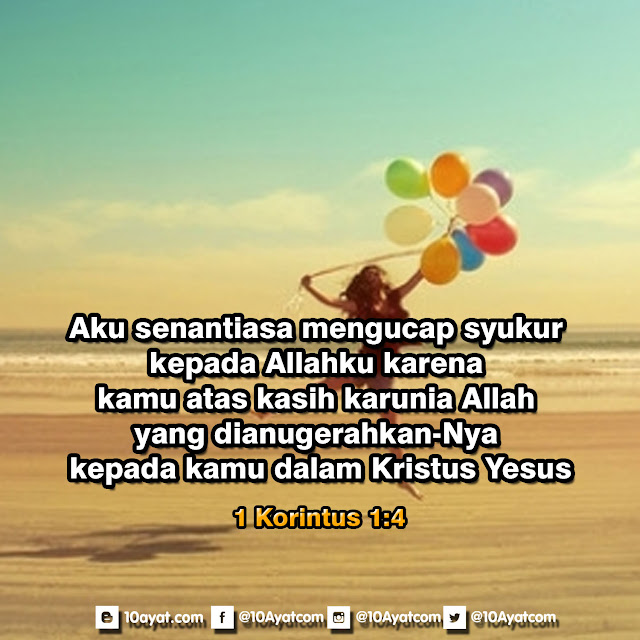 Aku senantiasa mengucap syukur kepada Allahku karena kamu atas kasih karunia Allah yang dianugerahkan-Nya kepada kamu dalam Kristus Yesus.