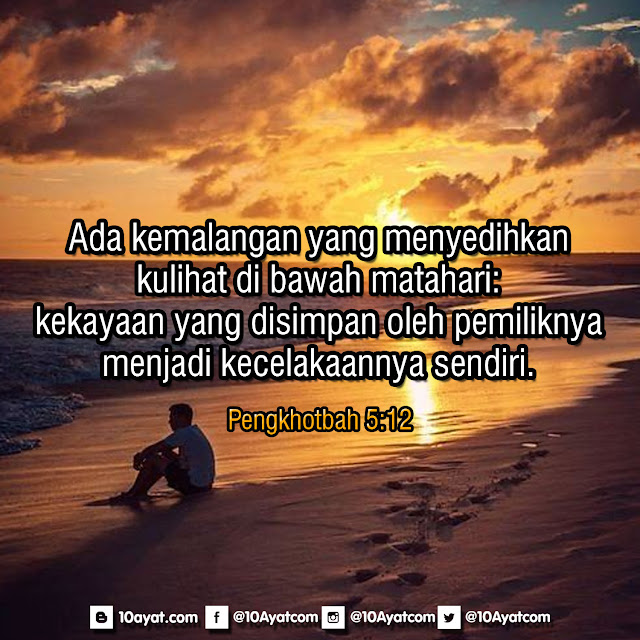Ada kemalangan yang menyedihkan kulihat di bawah matahari: kekayaan yang disimpan oleh pemiliknya menjadi kecelakaannya sendiri.