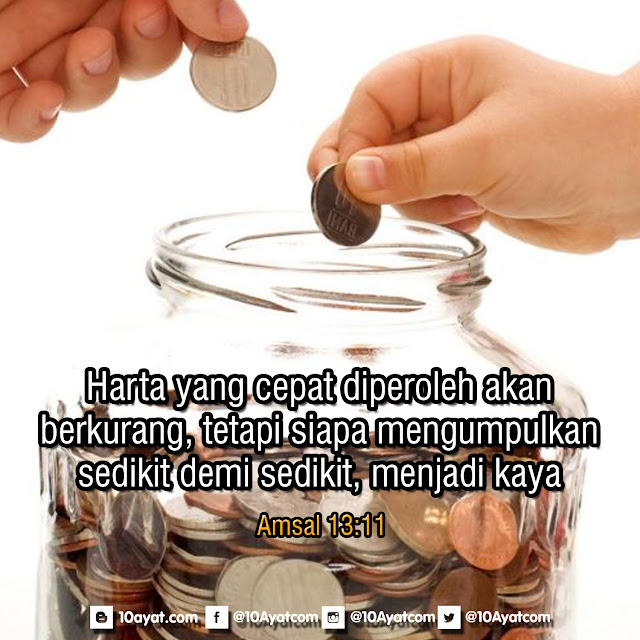 Harta yang cepat diperoleh akan berkurang, tetapi siapa mengumpulkan sedikit demi sedikit, menjadi kaya.