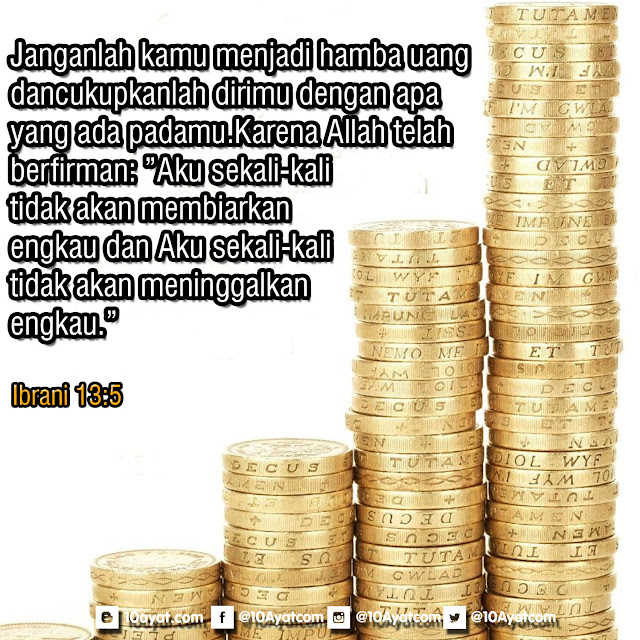 Janganlah kamu menjadi hamba uang dan cukupkanlah dirimu dengan apa yang ada padamu. Karena Allah telah berfirman: ”Aku sekali-kali tidak akan membiarkan engkau dan Aku sekali-kali tidak akan meninggalkan engkau.”