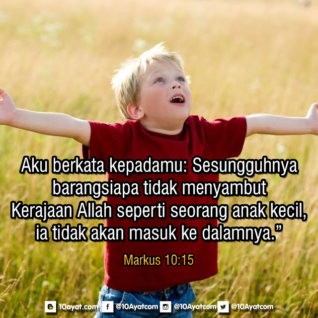 Aku berkata kepadamu: Sesungguhnya barangsiapa tidak menyambut Kerajaan Allah seperti seorang anak kecil, ia tidak akan masuk ke dalamnya.”