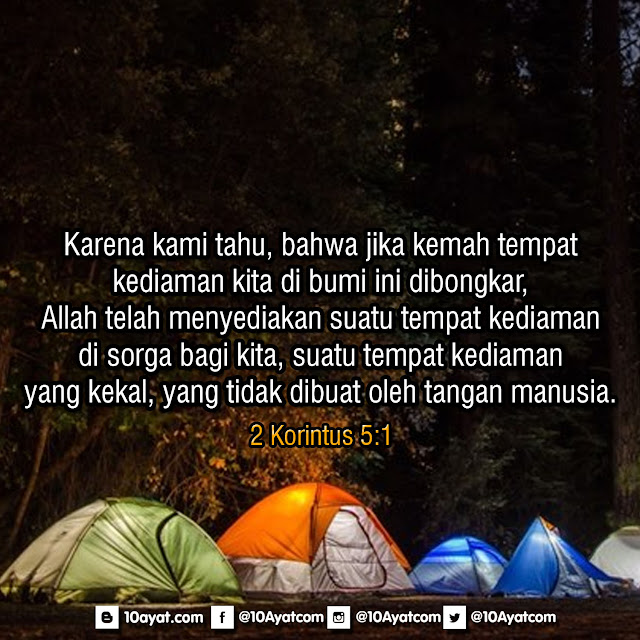 Karena kami tahu, bahwa jika kemah tempat kediaman kita di bumi ini dibongkar, Allah telah menyediakan suatu tempat kediaman di sorga bagi kita, suatu tempat kediaman yang kekal, yang tidak dibuat oleh tangan manusia.