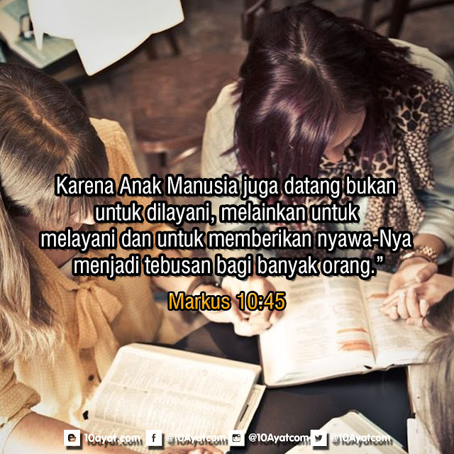 Karena Anak Manusia juga datang bukan untuk dilayani, melainkan untuk melayani dan untuk memberikan nyawa-Nya menjadi tebusan bagi banyak orang.”