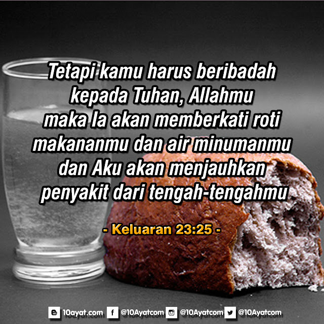 Tetapi kamu harus beribadah kepada Tuhan, Allahmu; maka Ia akan memberkati roti makananmu dan air minumanmu dan Aku akan menjauhkan penyakit dari tengah-tengahmu.