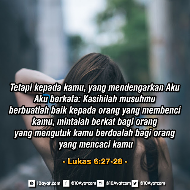 ”Tetapi kepada kamu, yang mendengarkan Aku, Aku berkata: Kasihilah musuhmu, berbuatlah baik kepada orang yang membenci kamu; mintalah berkat bagi orang yang mengutuk kamu; berdoalah bagi orang yang mencaci kamu.