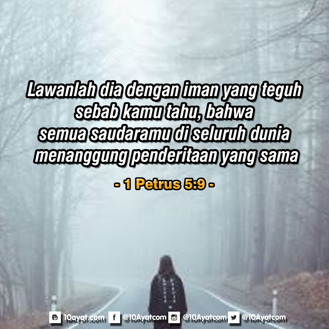 Lawanlah dia dengan iman yang teguh, sebab kamu tahu, bahwa semua saudaramu di seluruh dunia menanggung penderitaan yang sama.