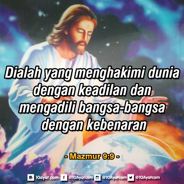 Dialah yang menghakimi dunia dengan keadilan dan mengadili bangsa-bangsa dengan kebenaran.