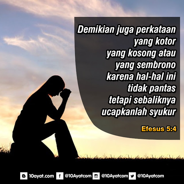 Demikian juga perkataan yang kotor, yang kosong atau yang sembrono – karena hal-hal ini tidak pantas – tetapi sebaliknya ucapkanlah syukur.