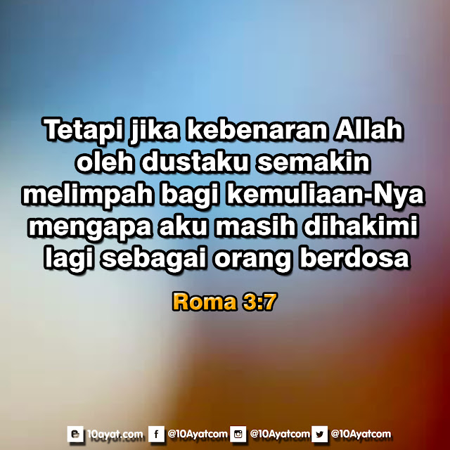 Tetapi jika kebenaran Allah oleh dustaku semakin melimpah bagi kemuliaan-Nya, mengapa aku masih dihakimi lagi sebagai orang berdosa?