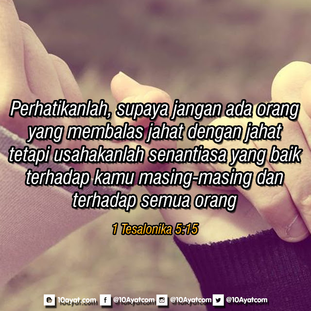 Perhatikanlah, supaya jangan ada orang yang membalas jahat dengan jahat, tetapi usahakanlah senantiasa yang baik, terhadap kamu masing-masing dan terhadap semua orang.