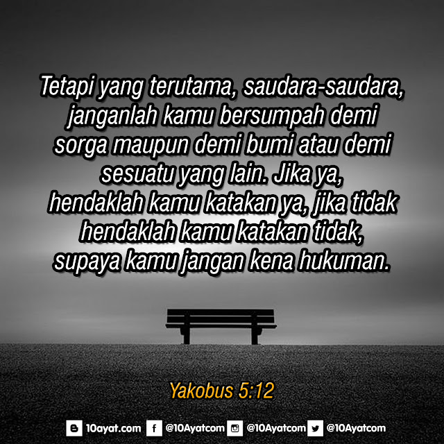 Tetapi yang terutama, saudara-saudara, janganlah kamu bersumpah demi sorga maupun demi bumi atau demi sesuatu yang lain. Jika ya, hendaklah kamu katakan ya, jika tidak hendaklah kamu katakan tidak, supaya kamu jangan kena hukuman.