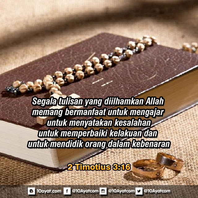 Segala tulisan yang diilhamkan Allah memang bermanfaat untuk mengajar, untuk menyatakan kesalahan, untuk memperbaiki kelakuan dan untuk mendidik orang dalam kebenaran.
