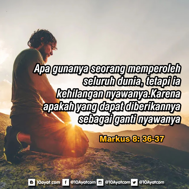Apa gunanya seorang memperoleh seluruh dunia, tetapi ia kehilangan nyawanya. Karena apakah yang dapat diberikannya sebagai ganti nyawanya?