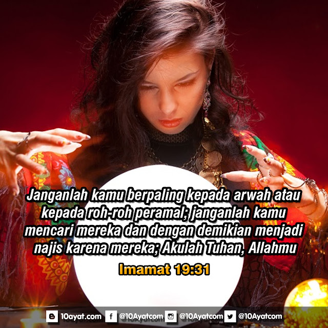 Janganlah kamu berpaling kepada arwah atau kepada roh-roh peramal; janganlah kamu mencari mereka dan dengan demikian menjadi najis karena mereka; Akulah Tuhan, Allahmu.