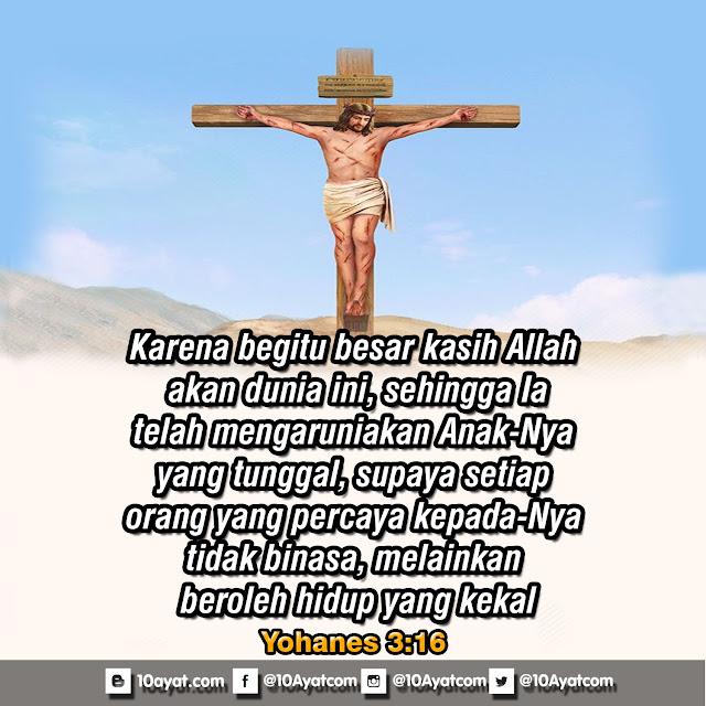 Karena begitu besar kasih Allah akan dunia ini, sehingga Ia telah mengaruniakan Anak-Nya yang tunggal, supaya setiap orang yang percaya kepada-Nya tidak binasa, melainkan beroleh hidup yang kekal.