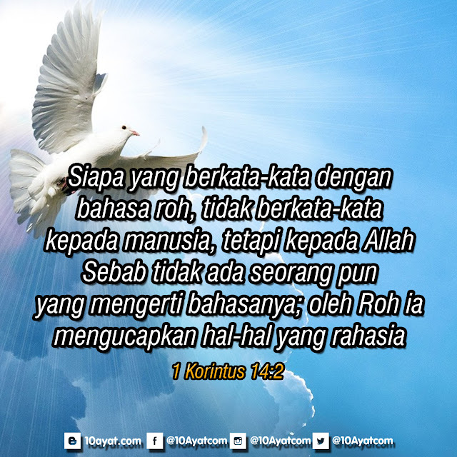 Siapa yang berkata-kata dengan bahasa roh, tidak berkata-kata kepada manusia, tetapi kepada Allah. Sebab tidak ada seorang pun yang mengerti bahasanya; oleh Roh ia mengucapkan hal-hal yang rahasia.