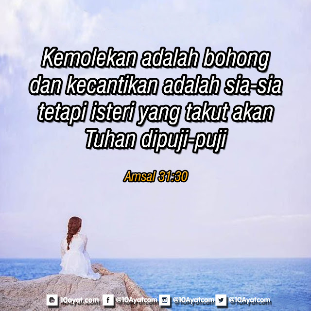 Kemolekan adalah bohong dan kecantikan adalah sia-sia, tetapi isteri yang takut akan Tuhan dipuji-puji.