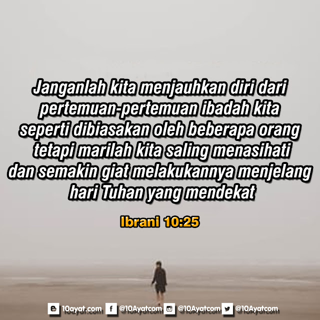 Janganlah kita menjauhkan diri dari pertemuan-pertemuan ibadah kita, seperti dibiasakan oleh beberapa orang, tetapi marilah kita saling menasihati, dan semakin giat melakukannya menjelang hari Tuhan yang mendekat.