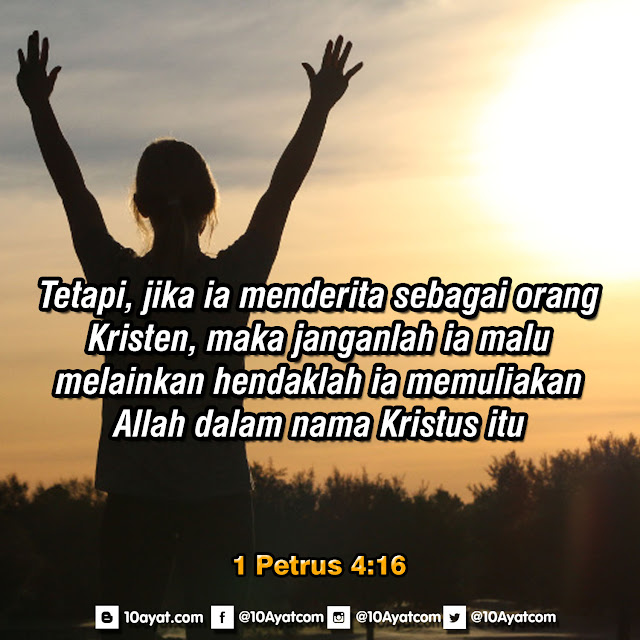 Tetapi, jika ia menderita sebagai orang Kristen, maka janganlah ia malu, melainkan hendaklah ia memuliakan Allah dalam nama Kristus itu.