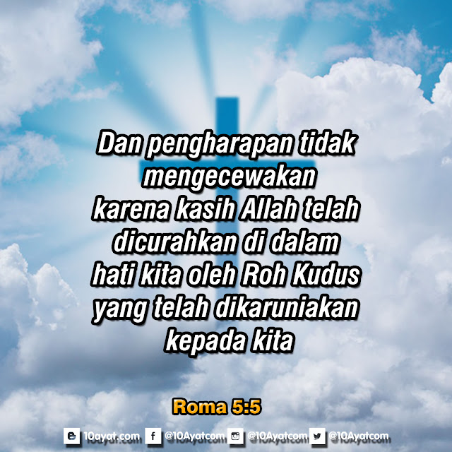 Dan pengharapan tidak mengecewakan, karena kasih Allah telah dicurahkan di dalam hati kita oleh Roh Kudus yang telah dikaruniakan kepada kita.