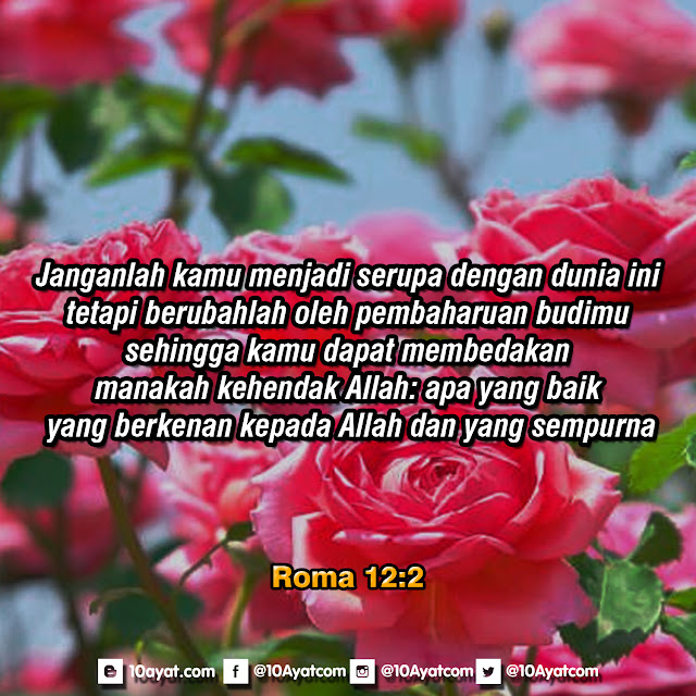 Janganlah kamu menjadi serupa dengan dunia ini, tetapi berubahlah oleh pembaharuan budimu, sehingga kamu dapat membedakan manakah kehendak Allah: apa yang baik, yang berkenan kepada Allah dan yang sempurna.