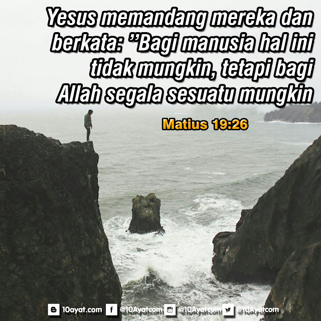 Yesus memandang mereka dan berkata: ”Bagi manusia hal ini tidak mungkin, tetapi bagi Allah segala sesuatu mungkin.”