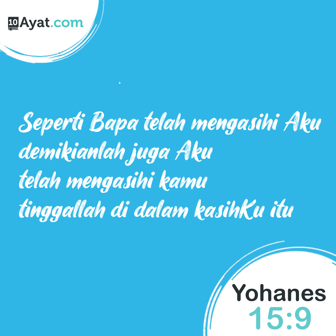 Yohanes 15:9 “Seperti Bapa telah mengasihi Aku,demikianlah juga Aku telah mengasihi kamu; tinggallah di dalam kasih-Ku itu.